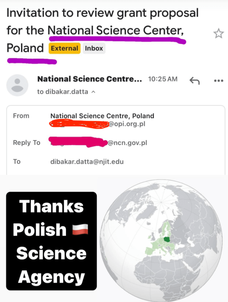 National Science Center of Poland, equivalent to US National Science Foundation, invited Dibakar Datta to review a grant proposal.