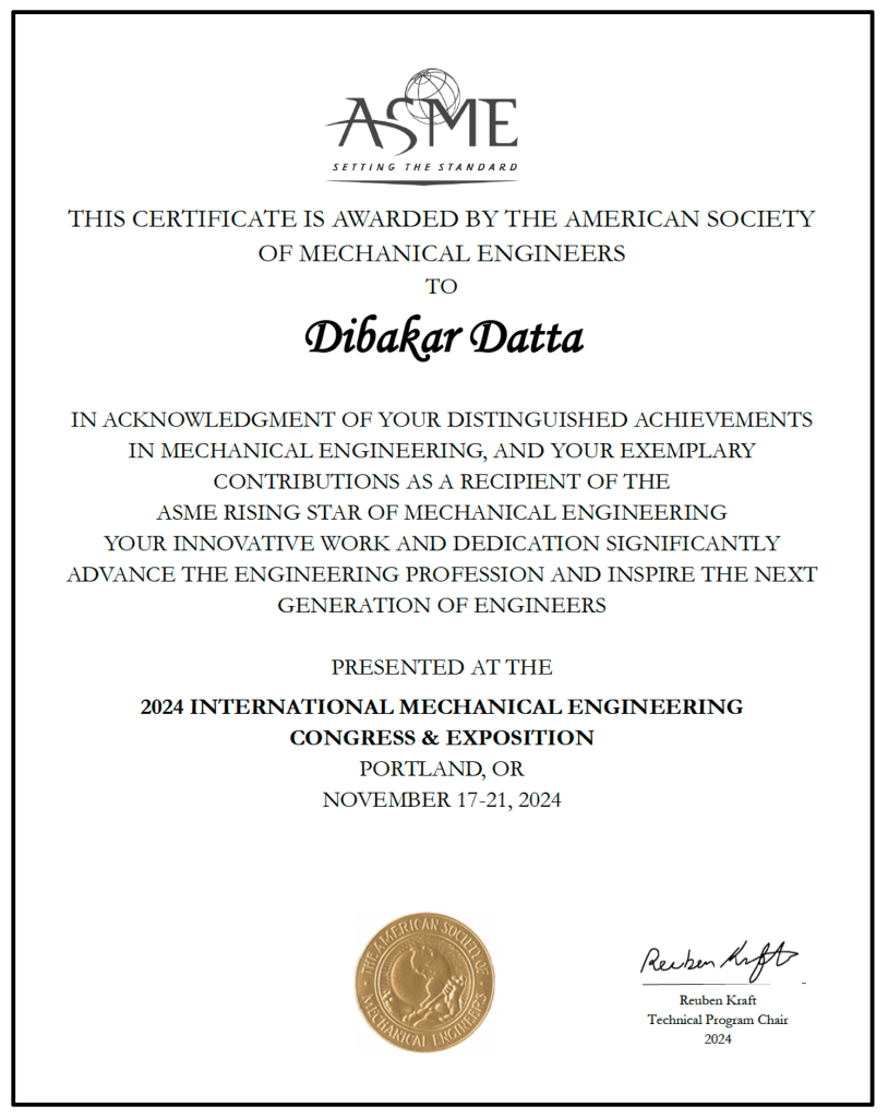 2024 : American Society of Mechanical Engineering (ASME) Rising Star 2024 [Abstract]