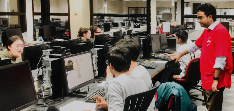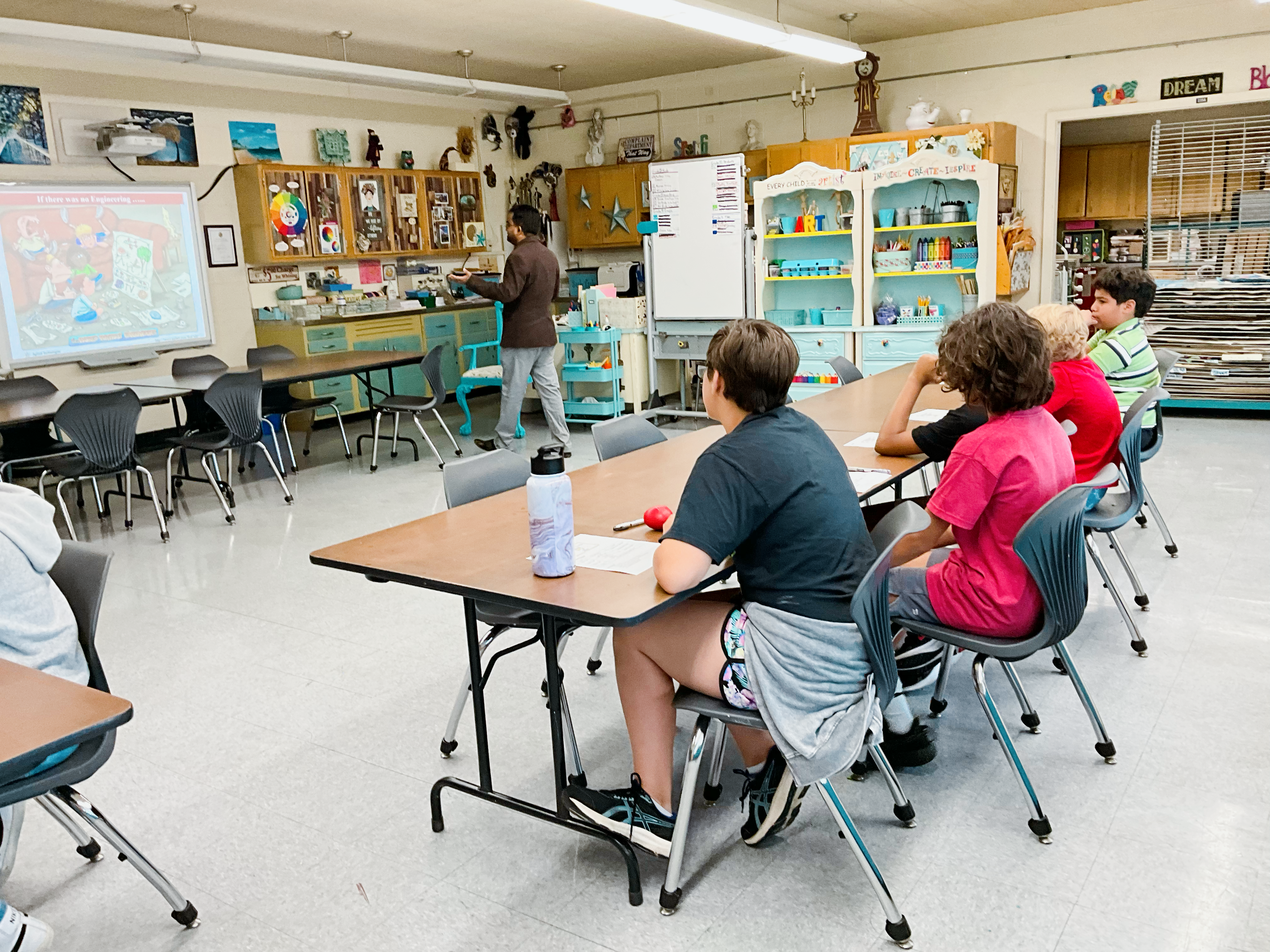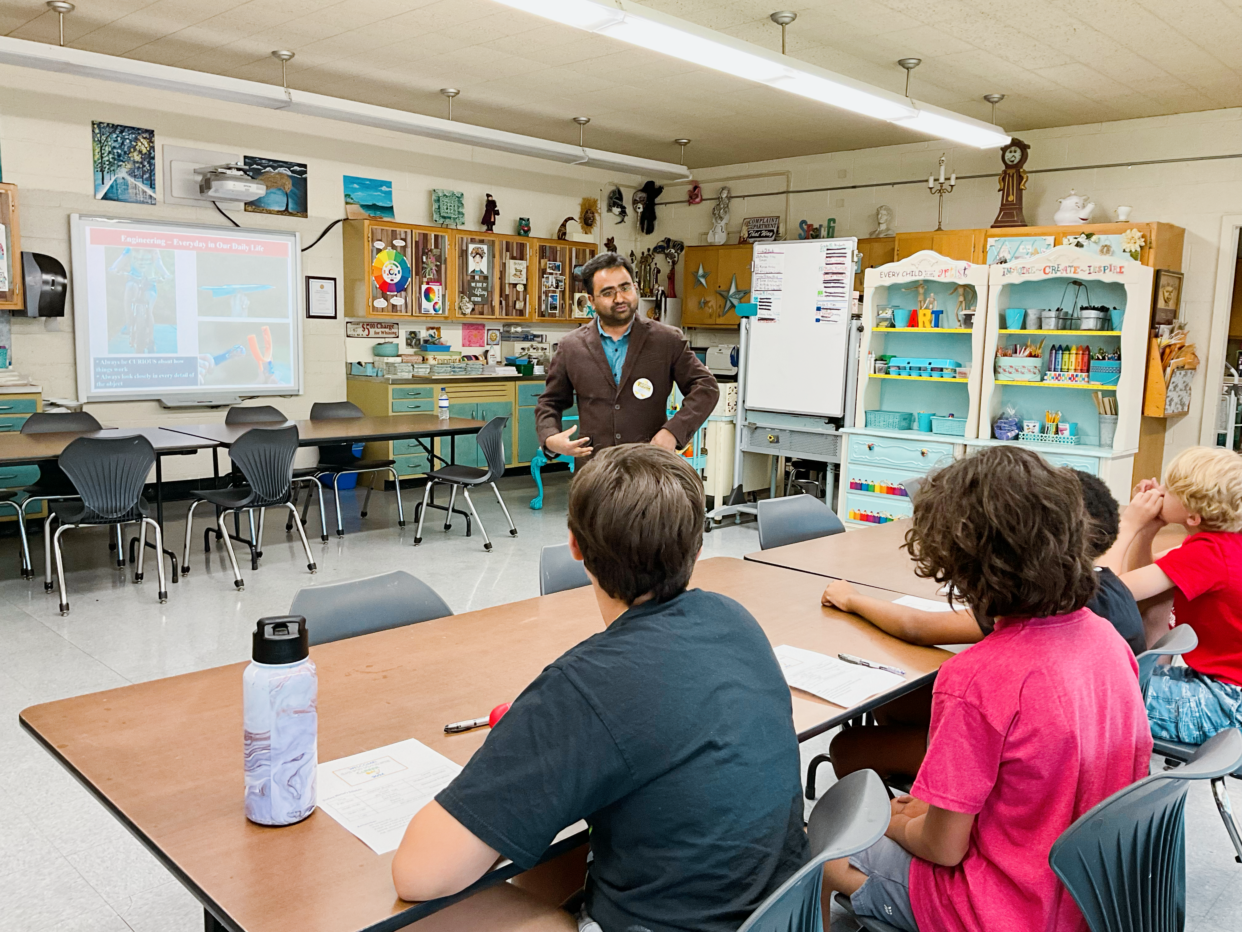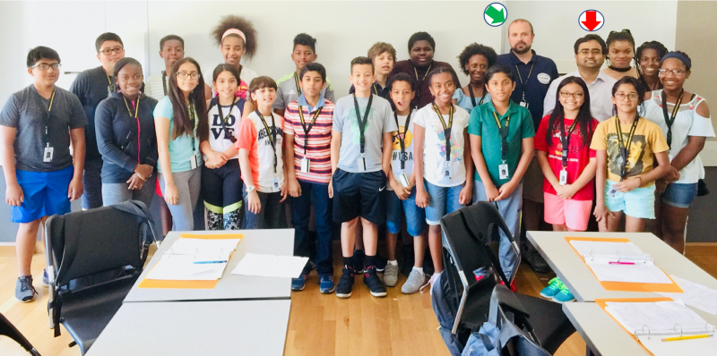 Dr. Datta (red arrow) worked with the pre-college teacher Mr. Mark Smith (green arrow). Datta taught high school students of grade 9 and 10 about the foundation of engineering. NJIT Pre-College Program organized this high-school summer program.