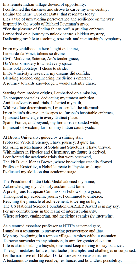 DIBAKAR DATTA : From A Remote Indian Village To The US National Science Foundation CAREER Award Winner
